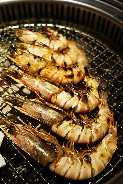 也下火爐烤的琥珀蝦,烤後的外殼顏色不變,烤好去殼後我吃到的第一口好香!它的肉質Q彈味道鮮美,好好吃哦!嚐過它的好滋味後當然第二輪再加點,吃個過癮。