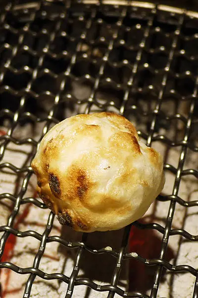 後來服務人員過來幫我們換網,也幫我們烤麻糬和鳯梨,看著服務人員把四片麻糬運用不斷翻動的技巧烤成球狀,這是我們從來沒看過的烤法,十分特別。