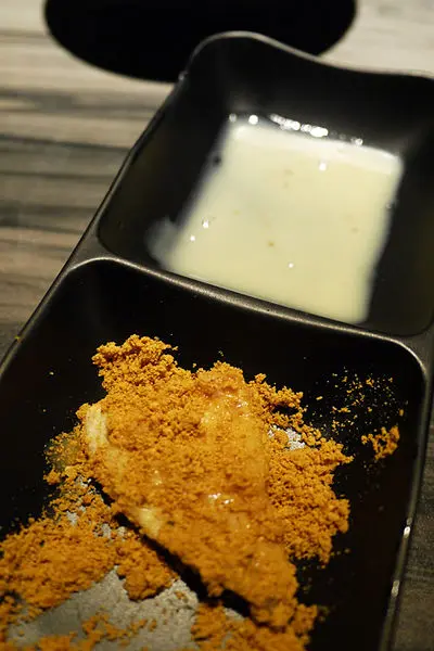最後則是一定要點的麻糬,附上煉乳和花生糖,自從第一次吃過烤麻糬後我就念念不忘。