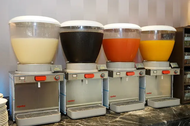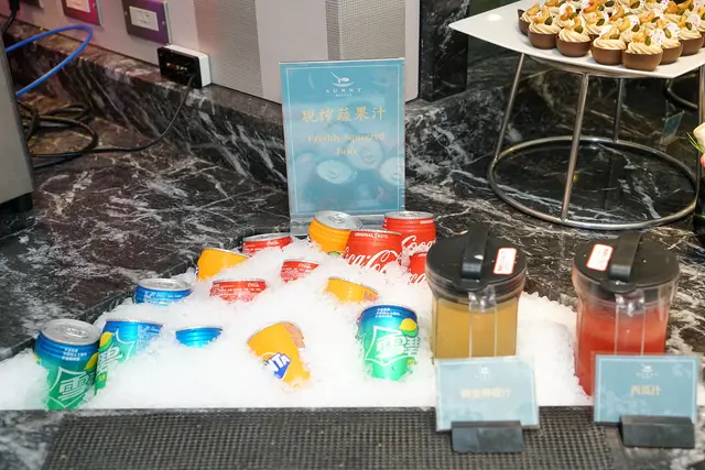 罐裝汽水、現榨果汁、咖啡機、茶包熱茶一應俱全