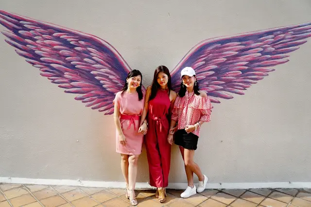 「天使翅膀牆」由新銳彩繪師張舒嫻繪製,歷時共25個小時完成,