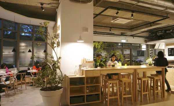 大家隨意找了喜歡的位置坐下,有靠窗的、有高腳椅坐位區、還有大型討論桌的空間。