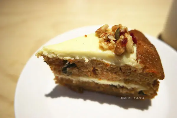 小白兔蛋糕顧名思義就是小白兔會吃的紅蘿蔔做成的蛋糕,比我上次在某家咖啡店裡吃到的還要好吃,口感紮實,雖然吃得出胡蘿蔔的味道但也不會太過搶眼,不喜歡吃紅蘿蔔的都可以接受,內餡咬下去有種鬆軟,堅果及奶霜的加疊,層次感十足。