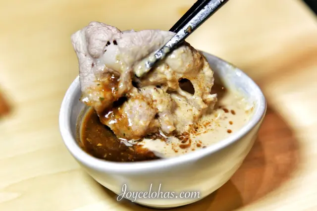 中間區域放有醬料自助區,手作沙茶&胡麻醬都是店家自調,歷時一年才調配出扁魚、丁香、蝦米和八角、肉桂、小茴香等共十九種材料的黃金比例,難怪味道如此獨特又印象深刻,真的很不一樣,一吃立刻讓大家讚不絕口呀。
