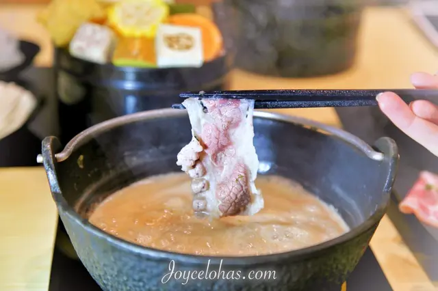 很喜歡在奶香膠原起司鍋中涮煮的肉片,吃起來會多了特別的脂香,讓人回味無窮。