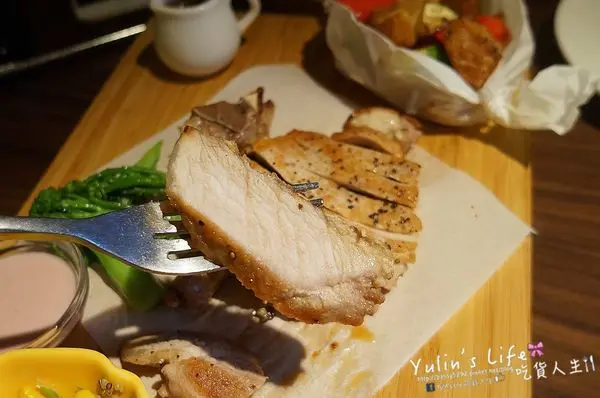 選用葛瑪蘭黑豬排,油花均勻,肉質細緻鮮嫩多汁,帶點彈性與Q度,簡單鹽巴調味更襯托肉質甜度~