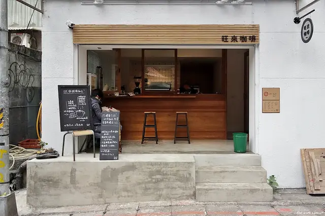 位在捷運小巨蛋站、微風南京附近巷弄內的旺來咖啡,是近期頗受關注度的特色店家,半戶外的空間簡約小巧,座位數不多,是適合外帶的咖啡吧,融合古早麵茶風味的旺來特調那提,以及那現點現烤、加入香草籽的雞蛋糕,都是這裡的招牌。