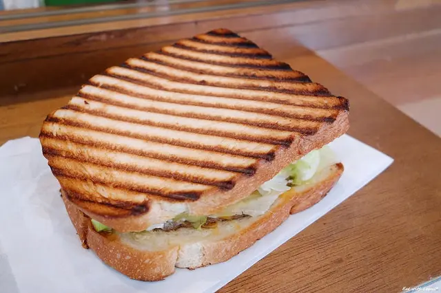 至於帕里尼三明治,店員推薦了不在菜單上的照燒豬肉口味,麵包裡頭只夾入照燒豬肉片、美生菜和沙拉醬,主角是薄片狀的豬肉,雖然肉的分量有點單薄,但味道調得不錯,甜鹹的照燒醬汁搭上這種偏酸的美乃滋一直都是安定組合,清爽的生菜佔了夾餡不小的比重,還好整體味道足夠,配著壓烤得略為酥脆的麵包也很討喜。