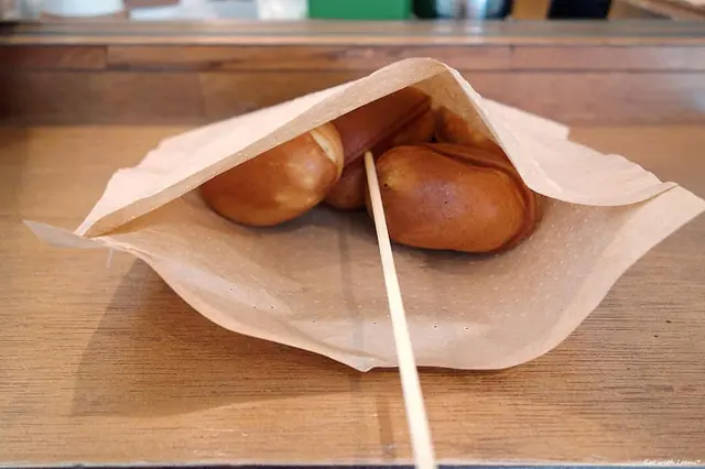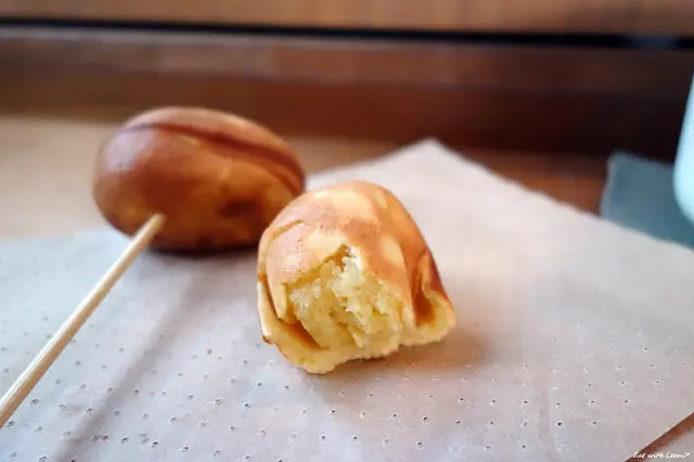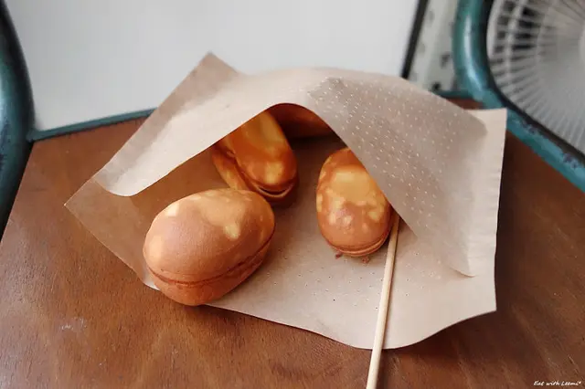 當然也點了份雞蛋糕當點心,一份5入裝的雞蛋糕,體型較圓厚,拿到手先趁熱吃了一個,畢竟冷掉以後香氣還是沒那麼豐足,還好像這樣藏在袋裡面拍照不太容易被看出來,話說這紙袋有打上密密麻麻透氣小孔,比較不會把水氣累積在裡頭,進而影響到口感。