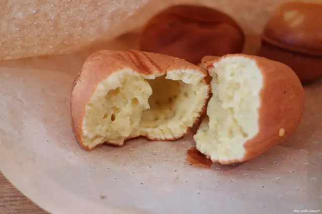 現點現烤的旺來雞蛋糕也是這裡的熱門商品,這雞蛋糕特別之處除了材料選用土雞蛋和鮮乳、還加入大溪地香草籽,在原本樸實小點心的本質上多帶了一點豪華感,剛出爐趁著熱吃,伴隨著熱氣溢散的蛋奶香味非常迷人,只有表層還帶很些微的酥,內裡則是比較厚實又帶點濕潤感,和印象中的雞蛋糕不太一樣,可能老家附近吃很多年的雞蛋糕比較偏內外都鬆軟的路線,所以才會讓我有這樣的比較,其實像旺來的這樣的口感也挺不錯。