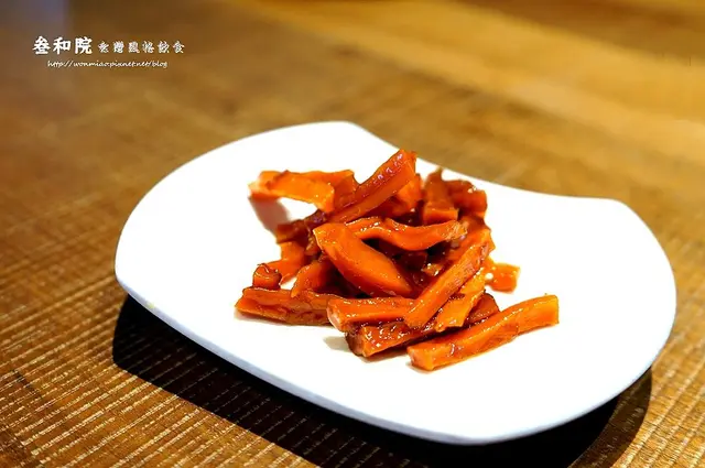 招待的小菜,是蜜漬的紅蘿蔔,蜜得相當入味,