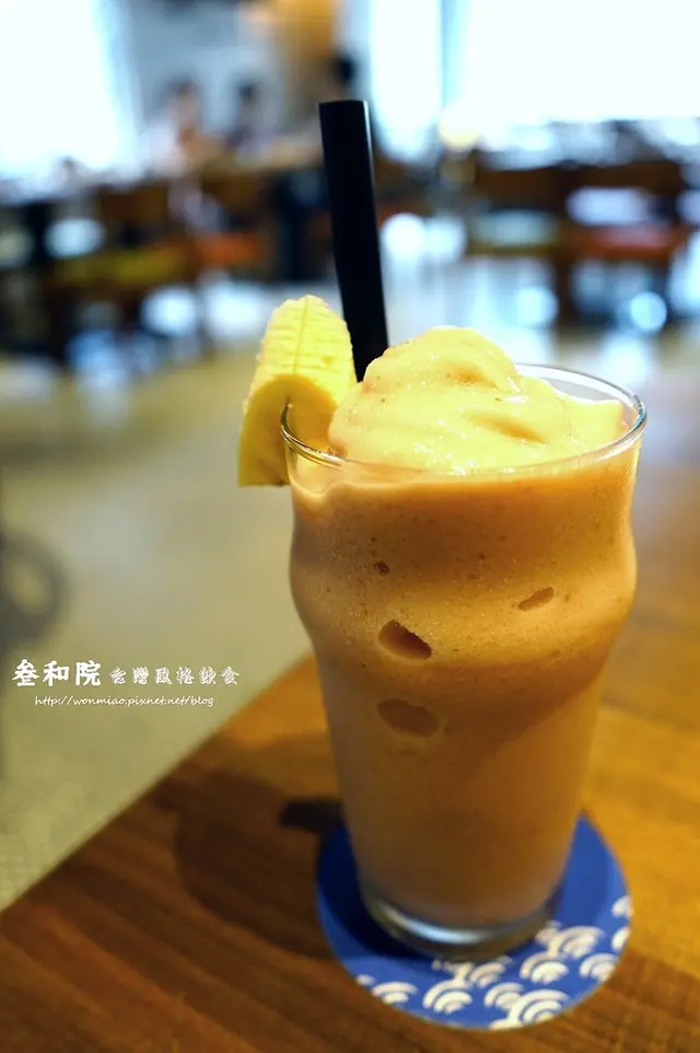喝得到果肉的蜜桃蘋果凍飲,在冷氣房下喝真的讓人有被"凍"到的感覺~