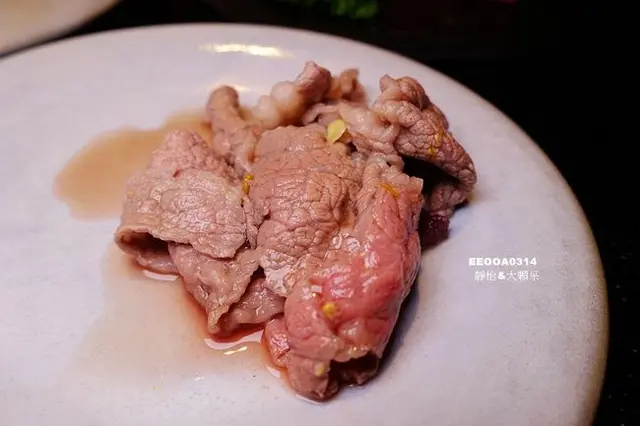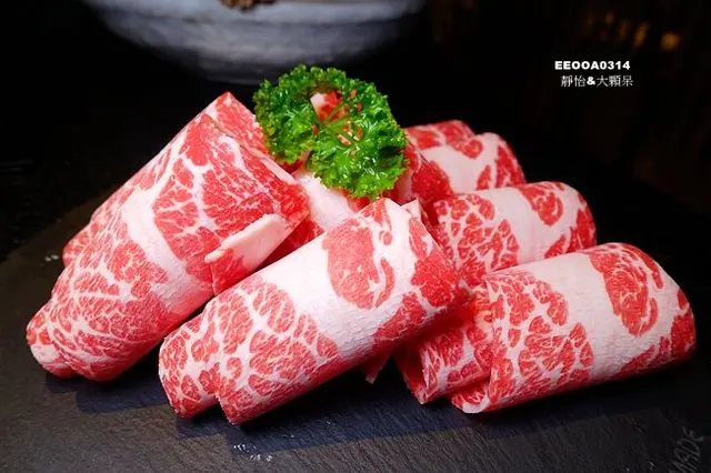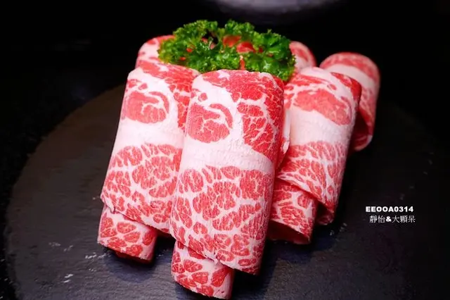 肉片有紐西蘭盤克夏豬美國prime穀飼牛小排可選擇,因為只有一種選擇我們只好捨棄伊比利豬了,兩種都是很高級的肉品,看看這美國prime骨飼牛小排,油花及色澤都好誘人啊,每一片都切得又厚又大