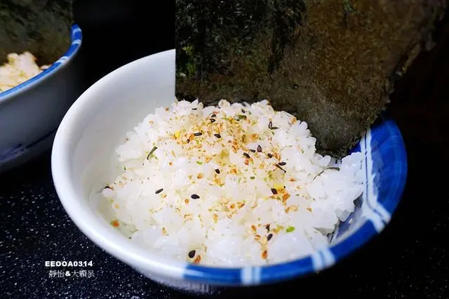 飯麵有山藥麵、烏龍麵及白飯可選擇,我們點了烏龍麵及白飯,另外看我們帶兩個小捧油還多送上兩碗附海苔片的白飯,還蠻貼心的