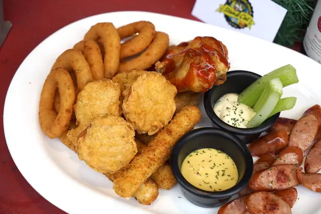 油炸的手藝很了得、德式香腸最優雅的吃法、酥炸的雞塊、紐澳良雞翅、起司條、洋蔥圈