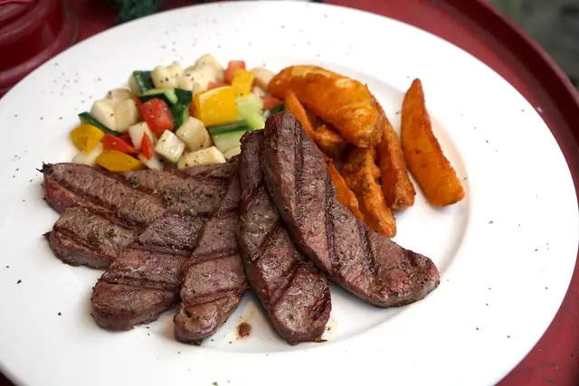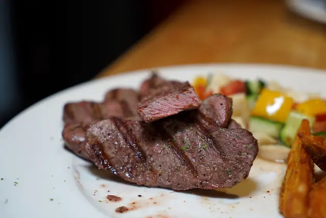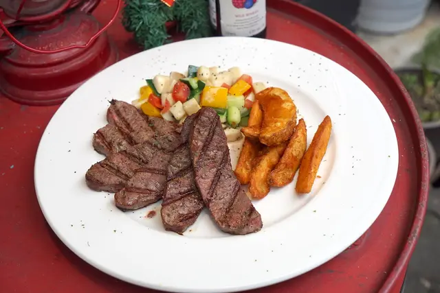 五分熟的牛小排咀嚼中肉汁還不錯、吃起來也超過這個價格的水準