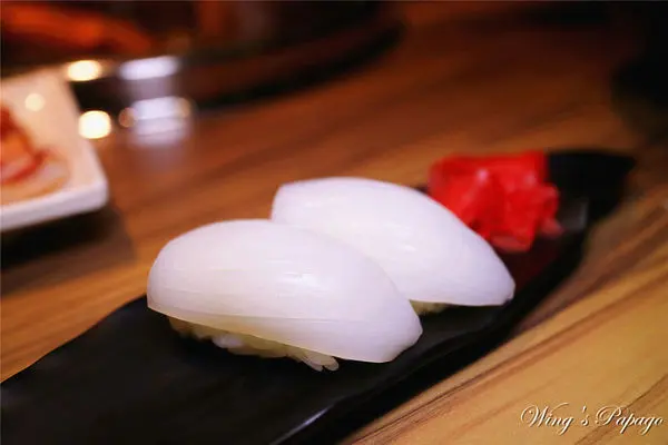 透抽握壽司口感Q滑有嚼勁,附上紅薑片,