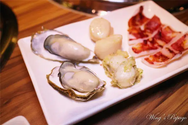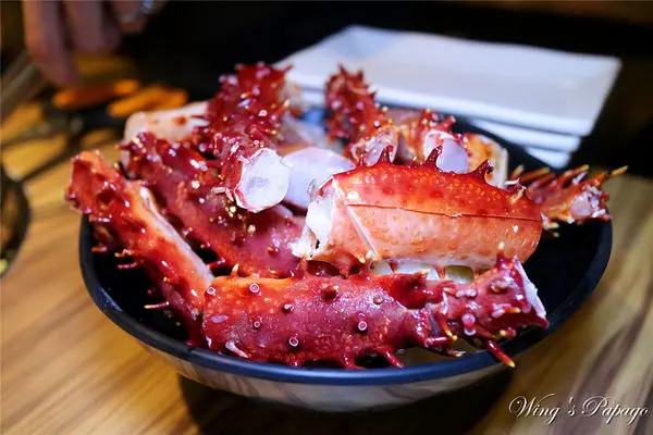 提供帝王蟹、鮮蝦、干貝、鮮蚵、牛小排、松阪豬等頂級燒烤食材,