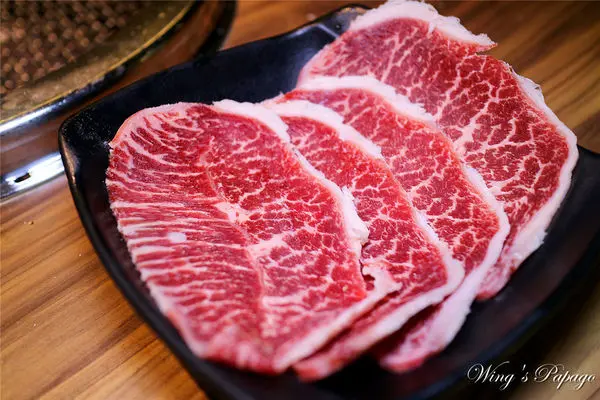 牛小排選用美國極黑牛,油花較多富含油脂度,