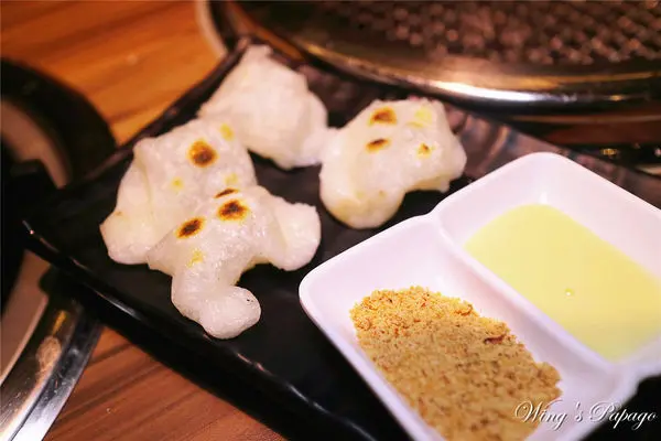 鹹食吃完了就來到了甜點時間,麻糬放上烤爐上烤到澎澎後,