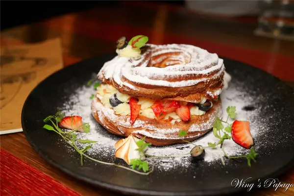 甜點皆為店內手作,巴黎布列斯特是將泡芙變身成圓形環狀,