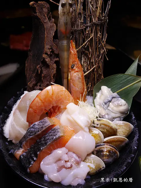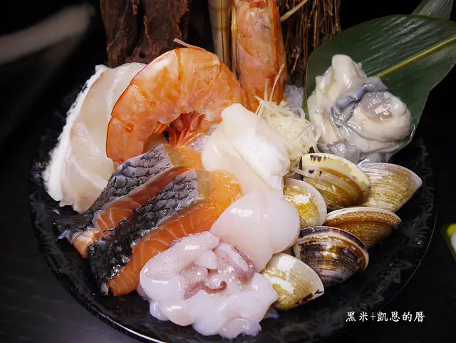 挪威鮭魚、龍膽石斑、鮮蚵、天使紅蝦、白蝦、透抽、蛤蠣、北海道生食干貝