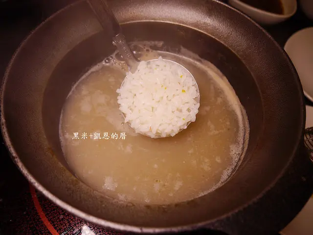 湯頭一直在大滾的狀態,讓米粒相互撞擊產生水解