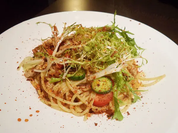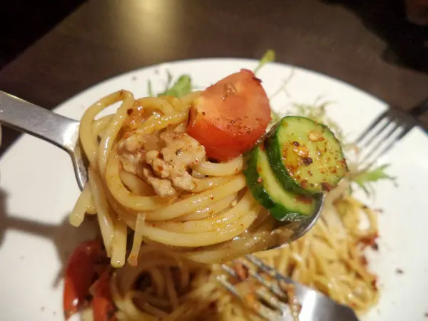 有別於一般傳統肉醬義大利麵,非常具有中式特色口味的料理,麵條經過特殊處理,使麵條吃起來有油麵的錯覺