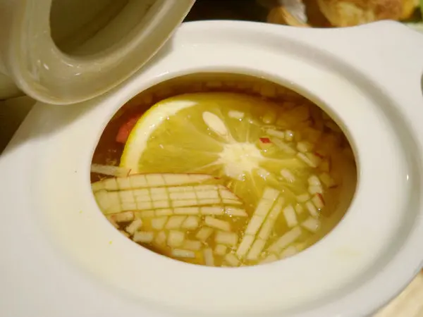 水果茶可說是店內的人氣茶飲,主廚將蘋果切丁,放入切片的柳丁,
