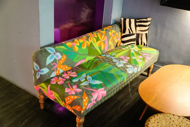 這沙發是老闆用進口花布製作而成,是一般外面看不到的配色,非常搶眼這個鋼骨藤椅造型非常特別,是老闆的收藏品,聽說許多名人想和老闆收購呢這裡還有一個特色就是咖啡巴台