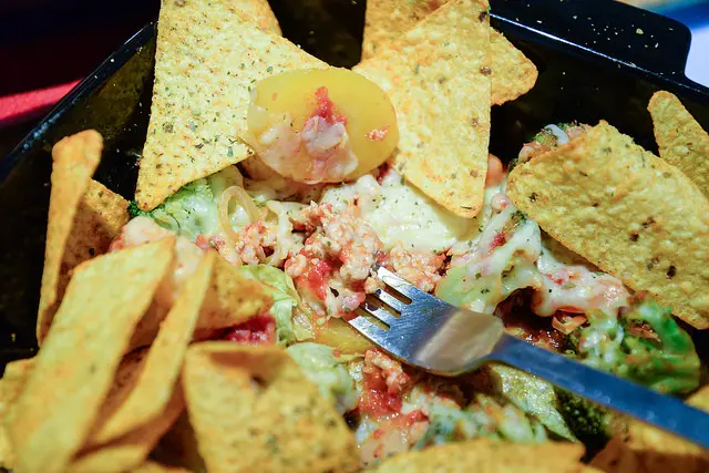 有,綠白花椰菜,豬絞肉,番茄,蘿蔔,上面再用滿滿的起司去焗烤