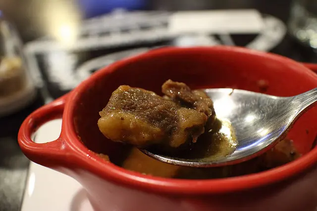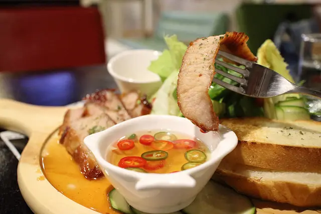 若味覺上太單一,旁邊的這盅小魚給我另一種風味。白色小魚裡盛裝著自製魚露,有幾片青、紅辣椒在液面上飄動。