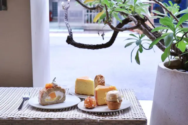 但是現在是夏天熱到滿身汗當然要座在店裡面吹冷氣吃蛋糕啦!