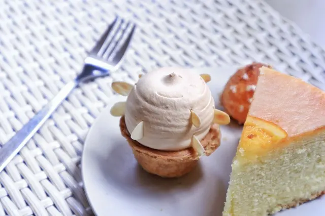 好可愛的一個檸檬小塔,上層白色圓圓的造型口感很像棉花糖,軟綿但是帶有Q度,