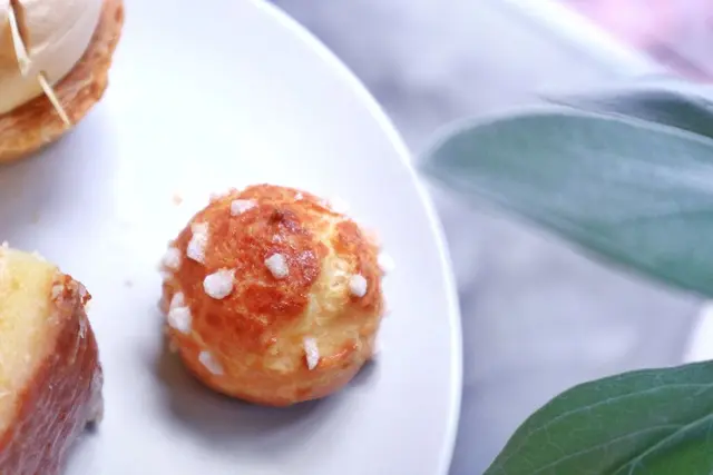 迷你可愛的泡芙上點綴的珍珠糖,看了就很誘惑著我去夾!