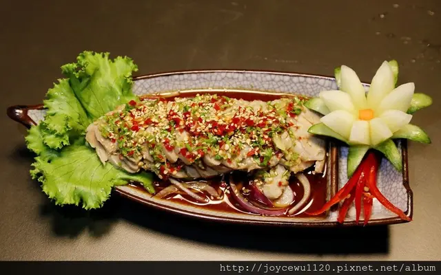 大約一斤重的石斑魚,肉質細緻,入口即化,淋上鮮美酸香湯汁咀嚼中透出微微辣度~~~ 層次分明,超級美味