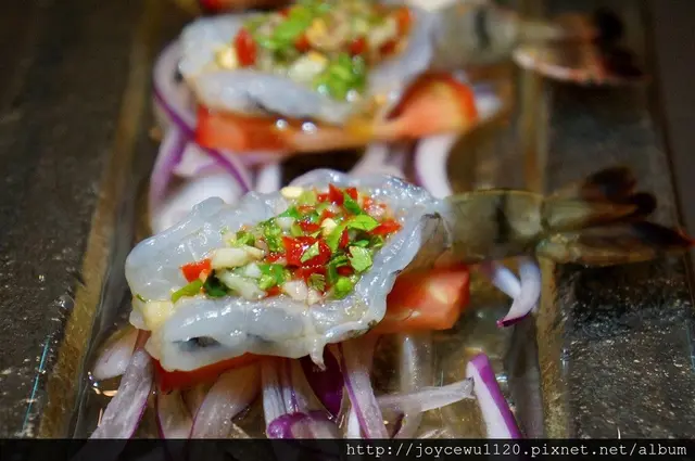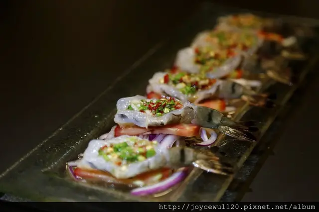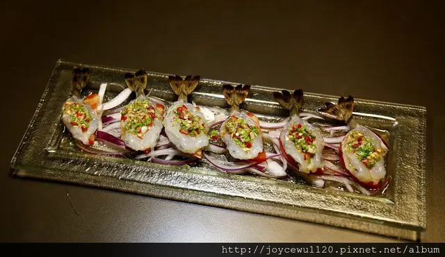 共有六尾生蝦,以主廚涼拌酸辣醬汁調味
