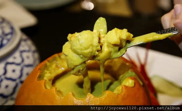 杓起一匙南瓜咖哩,一塊塊龍蝦肉,太讓人食指大動