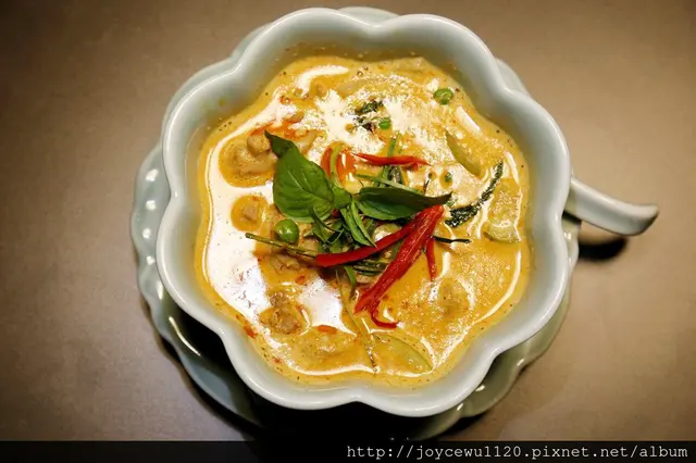 主廚特製紅咖哩,加入泰國茄子 青豆仁 九層塔 甜椒 椰汁等
