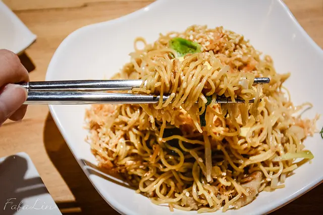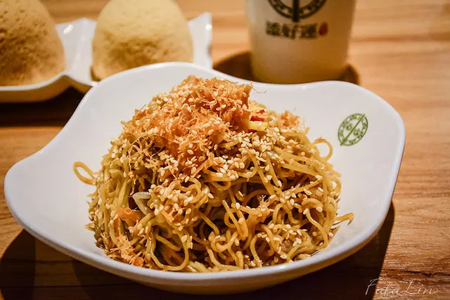 一拿到炒麵光看外觀有點愣住,覺得似乎太簡樸了些,待攪拌均勻將上頭干貝絲混入麵條後,一吃,麵條口感滑潤很夠味,而且意外的不乾口,裡面有肉絲、蔥、銀芽、干貝絲、白芝麻、蛋絲、紅蔥頭..等物,大概是干貝絲提高了這碗麵的成本,但還蠻好吃。