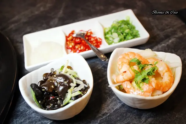 木耳爽脆又帶點Q度,涼拌蝦則口感清甜,底下是有點嗆辣的洋蔥絲