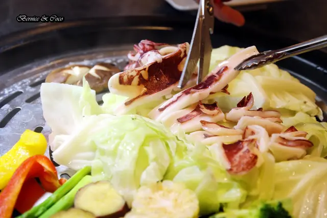 待我們食用一半過後,服務人員會將鍋中的食材移入盤中,在繼續為我們烹煮下一道餐點