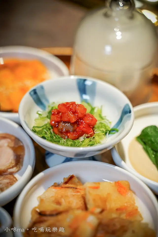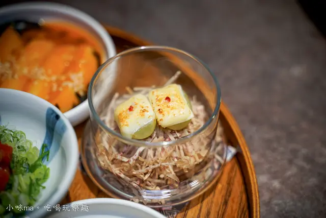 生食級天使紅蝦用了韓式醃醬稍微醃漬過,蝦肉口感帶著Q度而不是粉粉的那一種,一旁的涼拌小菜也是好開胃,一人一尾太滿足~