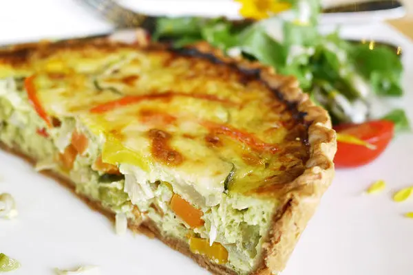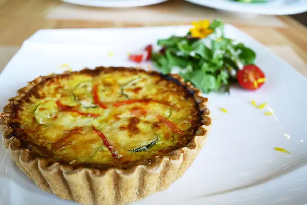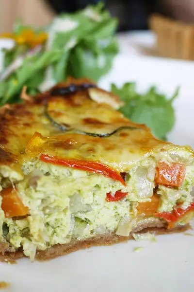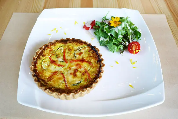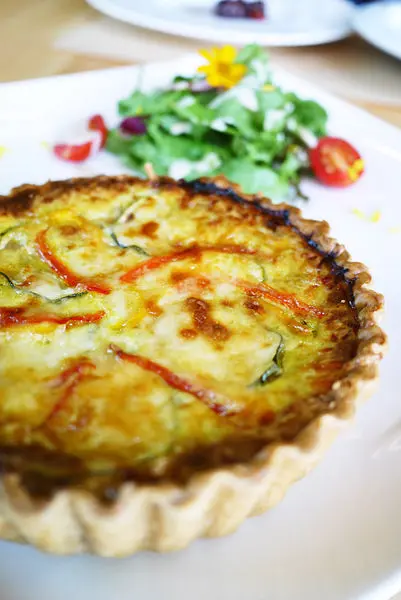 切開鹹派來,裡面用的蔬菜像是紅蘿蔔、青椒、櫛瓜等等,加上香濃的蛋,吃起來清爽不油膩,別有一番風味。