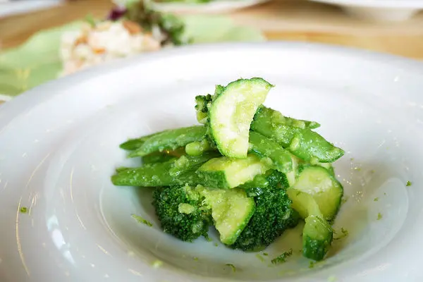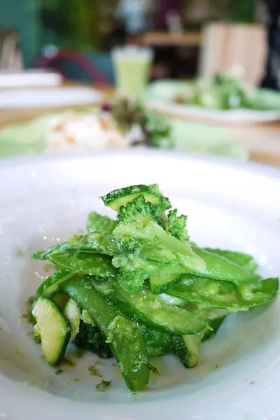 第二道是Green! Green! Green!,裡面使用了花椰菜、四季豆及櫛瓜,在淋上清爽的蘆筍醬汁而成,吃起來口味真的很清爽,充滿綠色蔬菜的營養,而且這種烹調方式最能把食物的營養給鎖住不流失。