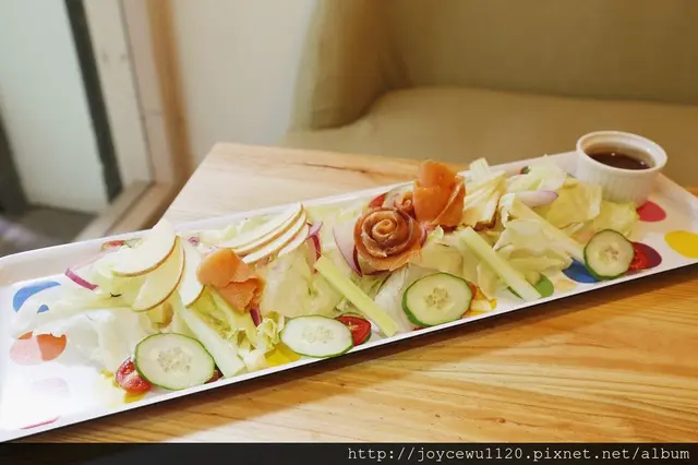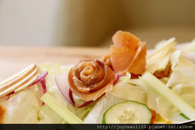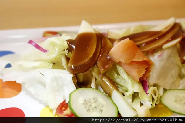 上桌時有些 ,生菜和燻鮭魚有些氧化了 加上油醋醬酸的有些刺激