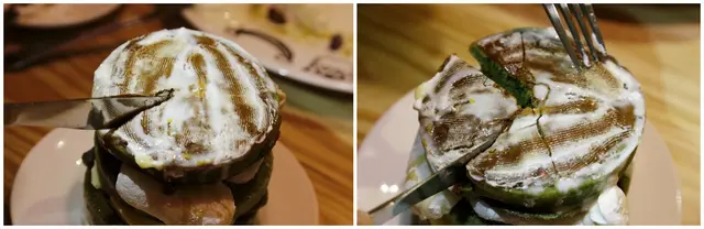 單吃抹茶鬆餅,有層薄博的焦糖,軟綿脆口