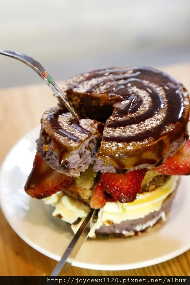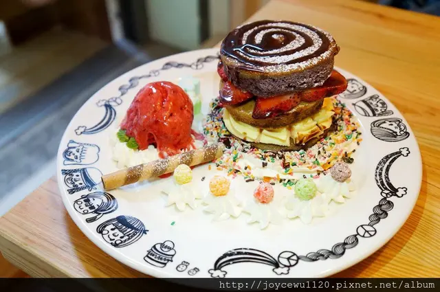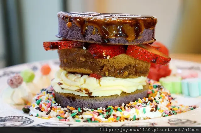 鎮店招牌彩虹疊疊樂把童年玩具創意改編成甜點版本! 現烤鬆餅 搭配豐富的配料,什麼想的到的口味都有