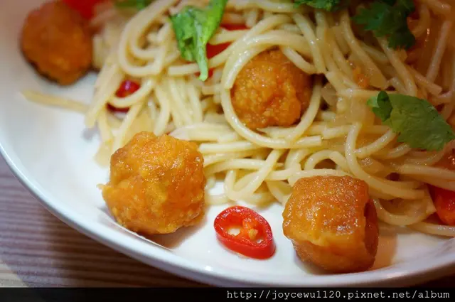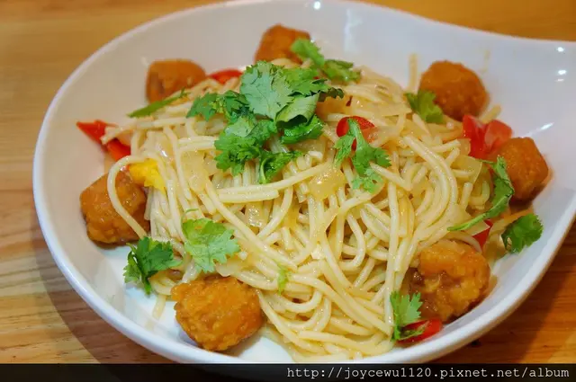 主要是用泰式酸辣醬 加入甜椒 洋蔥等去做拌炒,特別簡短的義大利麵口感軟,讓我想到鐵板麵
