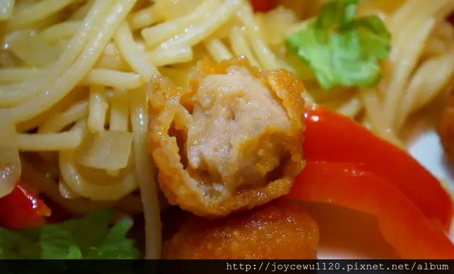 酥炸過的辣雞球,外皮微酥,咬下去可以感受到一點雞汁在口中流竄